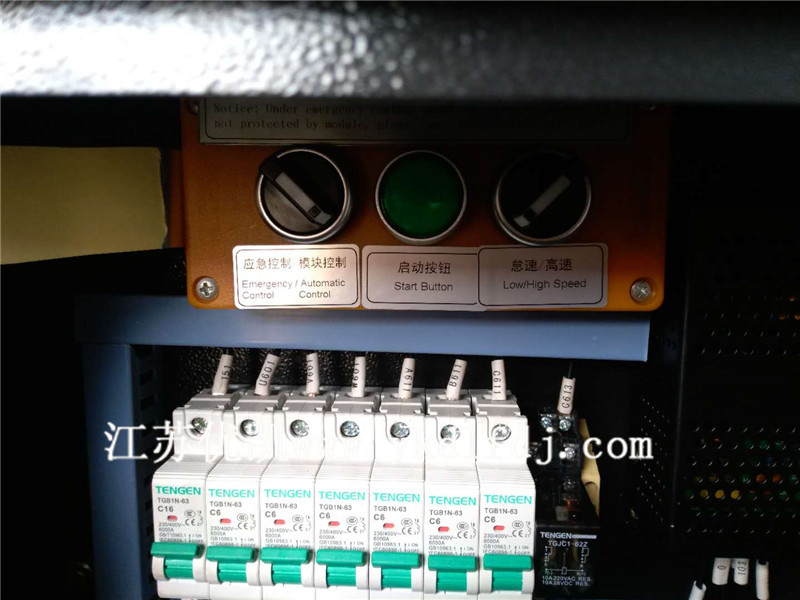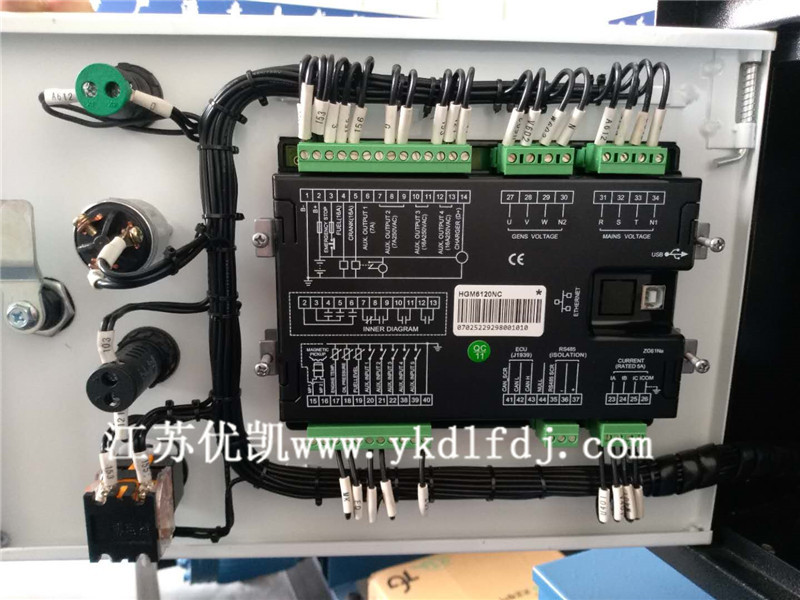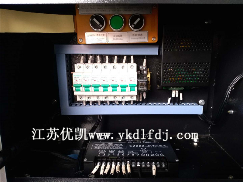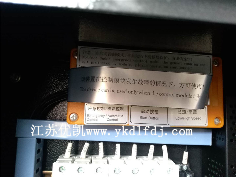 柴油發(fā)電機(jī)組在控制系統(tǒng)出現(xiàn)故障的情況下,如何應(yīng)急啟動發(fā)電機(jī)組呢?優(yōu)凱動力柴油發(fā)電機(jī)組在自動化控制系統(tǒng)內(nèi)特別裝置了一個(gè)應(yīng)急啟動裝置,如下說明: 首先,發(fā)電機(jī)組控制系統(tǒng)內(nèi)部包括:控制模塊、電子調(diào)速器、市電浮充電器、電動空氣開關(guān)、應(yīng)急控制裝置等,部件作用如下說明: 控制模塊 采用全中文智能化液晶顯示控制模塊,當(dāng)市電停電時(shí),經(jīng)延時(shí)確認(rèn)(0-30S可調(diào)),機(jī)組自啟動(1-8次可調(diào),初次啟動成功率>99%),自動確認(rèn)發(fā)電機(jī)組供電正常后,向負(fù)載供電,市電恢復(fù)正常后,經(jīng)延時(shí)確認(rèn)(0-30S可調(diào)),自動冷卻停機(jī)(冷卻停機(jī)時(shí)間0-300S可調(diào))。 保護(hù)功能:低/超速、啟動失敗、水溫過高、輸出電壓故障(過壓、欠壓、過流)。 界面操作:自動/停止/手動功能選擇,緊急停車按鈕、蜂鳴器及市電浮充器。 報(bào)警指示:低/超速、輸出電壓故障、啟動失敗、高水溫預(yù)報(bào)警。 設(shè)置功能:允許用戶對其參數(shù)進(jìn)行更改設(shè)定,同時(shí)記憶在內(nèi)部FLASH存儲器內(nèi),在系統(tǒng)掉電時(shí)也不會丟失,控制器所有參數(shù)均可以在前面板進(jìn)行設(shè)置。 電子調(diào)速器 電子調(diào)速器是一個(gè)控制發(fā)電機(jī)轉(zhuǎn)速的控制裝置。它是根據(jù)接受的電信號,通過控制器和執(zhí)行器來改變噴油泵供油量的大小。 市電浮充電器 1、保持電池的電壓處于浮充電壓范圍,此時(shí)電池的板柵(就是極板的導(dǎo)電骨架)腐蝕處于較慢的狀態(tài),可延長電池壽命。 2、補(bǔ)充電池自放電造成的容量損失,保持電量充足。 3、抑制活性物質(zhì)重結(jié)晶造成的硫酸鹽化。 電池的浮充時(shí)間是沒有限制的,只要電壓處于浮充電壓范圍內(nèi),鉛酸蓄電池是不怕浮充的,比如通信系統(tǒng)使用的長壽命電池,質(zhì)保期都在8年以上,整個(gè)壽命期內(nèi)除了市電故障被使用及常規(guī)維護(hù)外,始終處于浮充狀態(tài)。 電動空氣開關(guān) 其中一個(gè)生產(chǎn)場地的發(fā)電供電小空開要改為電動合閘,并與市電互鎖,電動空開安裝在自動控制柜內(nèi)部,以便控制互鎖。 應(yīng)急控制裝置 在控制模塊出現(xiàn)故障,無法實(shí)現(xiàn)自啟動時(shí),可使用優(yōu)凱動力在控制柜內(nèi)加裝的應(yīng)急控制裝置,如下圖左邊開關(guān)打到應(yīng)急控制,中間按下啟動按鈕,右邊開關(guān)打到怠速,等發(fā)電機(jī)啟動后,右邊開關(guān)打到高速,即起到發(fā)電機(jī)組應(yīng)急啟動的作用,解決了由于自動化控制系統(tǒng)出現(xiàn)問題時(shí)應(yīng)急啟動發(fā)電機(jī)組的功能。