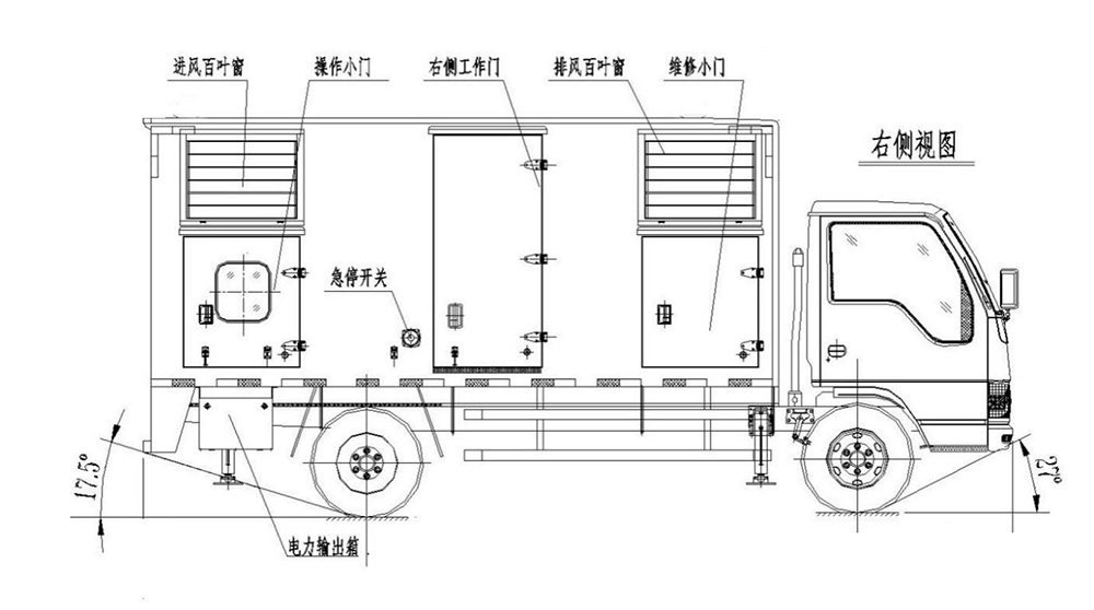 我公司生產(chǎn)的移動(dòng)電源車(簡(jiǎn)稱電源車),根據(jù)用戶對(duì)柴油發(fā)電機(jī)組容量、性能的要求,選擇外形美觀,性能優(yōu)良的底盤汽車,使用性能穩(wěn)定性的柴油發(fā)電機(jī)組安裝于標(biāo)準(zhǔn)車廂內(nèi)。具有良好的越野性和對(duì)各種路面的適應(yīng)性,適應(yīng)于全天候的野外露天作業(yè),具有整體性能穩(wěn)定可靠、操作簡(jiǎn)便、噪音低、排放性好、維護(hù)性好等特點(diǎn),能很好的滿足戶外作業(yè)和應(yīng)急供電需要。